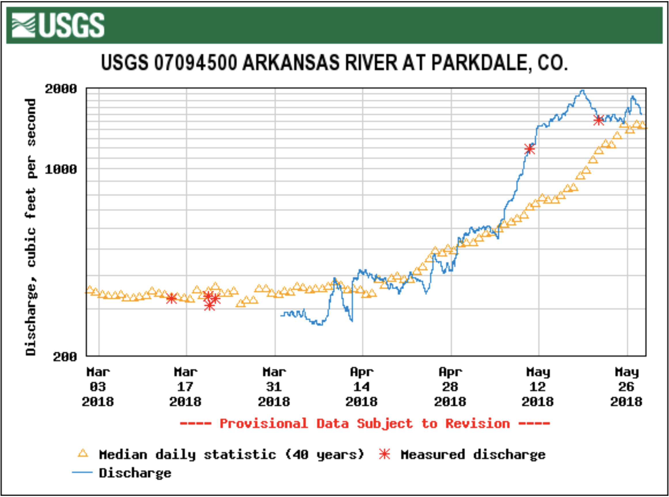 Particularly for the hardest hit areas of southern Colorado, half of the snow means half of the spring snowmelt. A quick scan through statewide stream flow levels already shows below average water discharge through most of Colorado (there are localized exceptions), thanks to a warm May that’s already melted off much of the meager snowpack.