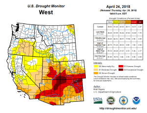 And those gains in soil moisture were much needed. According to the Drought Monitor, topsoil moisture in Colorado was 53 percent very short to short as of April 22, but that was an 8-point improvement from the previous week. That said, winter wheat conditions declined for the week ending on April 22, with a 5 percent increase to 29 percent of the crop rated very poor to poor in Colorado.