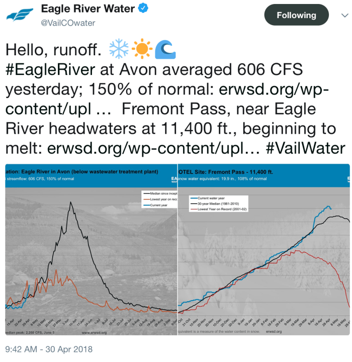 Editor’s note: Aspen Journalism is covering rivers and water in collaboration with The Aspen Times, which published this story on Monday, April 30, 2018, and with the Glenwood Springs Post Independent, which published the story on Tuesday, May 1, 2018, the Vail Daily, which published the story on May 1, 2018, and the Summit Daily News, which published it on May 1, 2018.