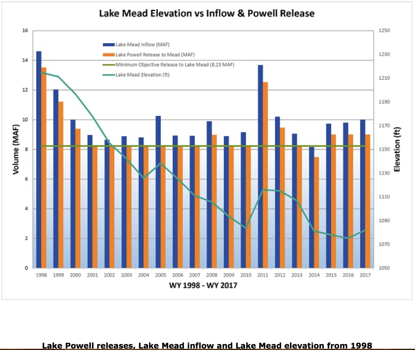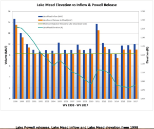 Despite the prevalence of highly variable and lower than average watershed runoff in the years since 2011, the Bureau has released an amount in excess of 8.23 million acre-feet to Lake Mead five of the last seven years. And, according to the Bureau’s River Operations Group, conditions call for another release of 9.0 million acre-feet into Lake Mead in 2019.