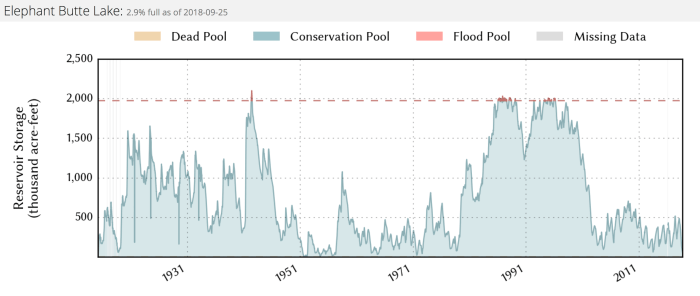 In south-central New Mexico, near Truth or Consequences, the Elephant Butte Reservoir is at just 3 percent capacity.