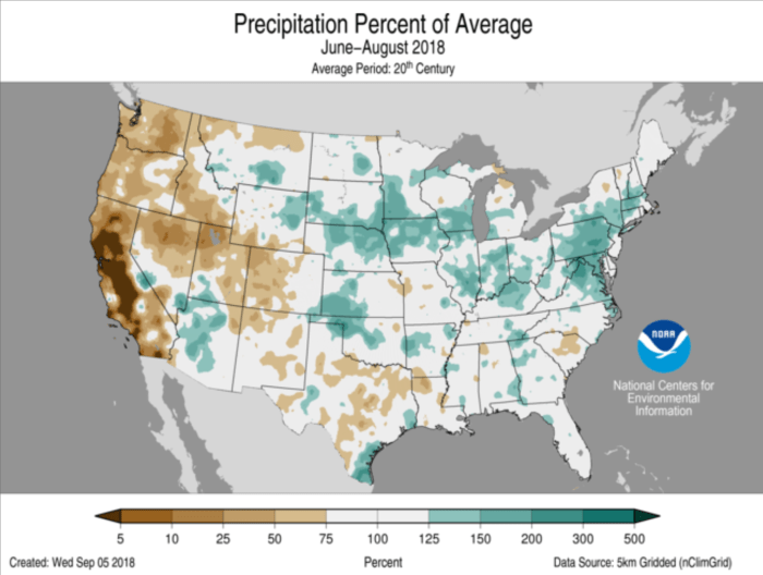 Three tropical systems drenched three separate drought areas this past week, with Hurricane Florence affecting the Carolinas with record rainfall, a low pressure system in the western Gulf of Mexico bringing rain to parts of Texas and Louisiana, and Tropical Storm Olivia bringing yet more rain to Hawaii. Drought conditions improved or were alleviated across these regions. Some showers and thunderstorms were seen across the Plains, but not enough to improve drought conditions. Unfortunately, many areas experiencing severe to exceptional drought saw little to no rainfall, with the dryness often accompanied by warmer-than-normal temperatures for this time of year, exacerbating conditions. Notably, eastern Oregon, northern Utah, and western Colorado all saw expansion of extreme or exceptional drought…