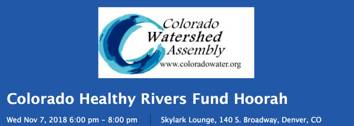 Join us for a celebration fundraiser for the Colorado Healthy Rivers Fund (CHRF). CHRF grants money to on-the-ground projects that contribute to cleaner water, healthier wildlife habitat, improved recreation and vibrant local economies throughout our state. The Colorado Healthy Rivers Fund has granted funding for more than 80 projects statewide. See some of our Past Project Highlights.