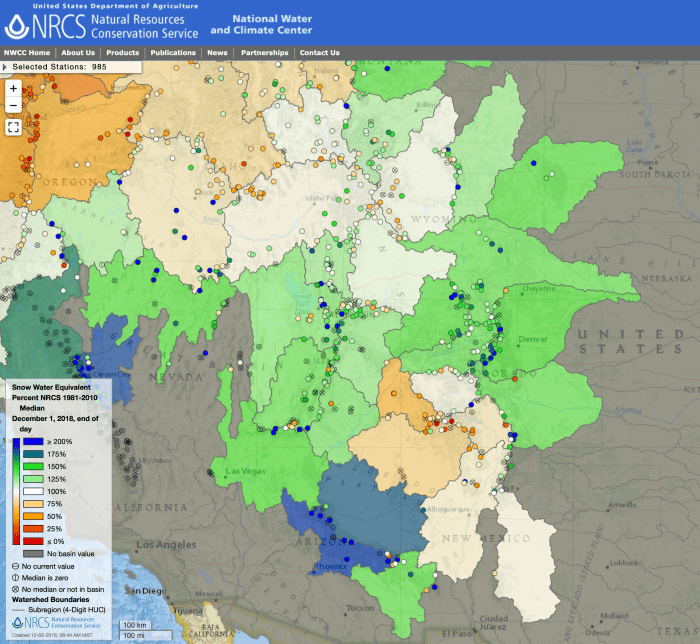 While southwest Colorado also benefited from that moisture, conditions more recently have been drier there. The Natural Resources Conservation Service reported as of Thursday that while statewide snowpack averaged 117 percent of normal, southwest Colorado has fallen below median snowpack, with the Gunnison River Basin at 94 percent, the Upper Rio Grande at 86 percent and the Four Corners basins at just 70 percent. That compares to 133 percent for the Upper Colorado River Basin, 130 percent for the Yampa/White river basins, and around 150 percent for the Arkansas and South Platte basins…