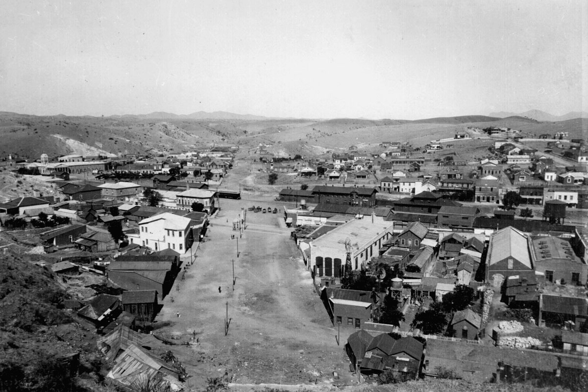 The border between Nogales, Arizona, and Mexico around 1898. “Nogales, Santa Cruz Co. Showing boundary line between Arizona and Mexico.” General view of center of town from hillside, looking west along International Street, ca. 1898~99 Photo credit: Wikimedia Commons