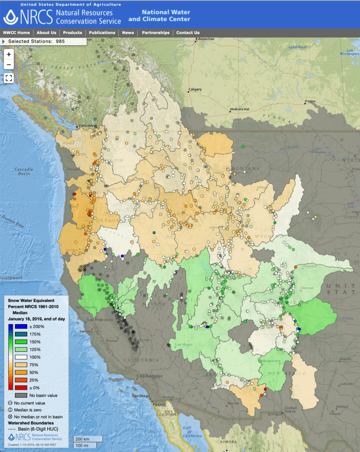And here’s a screen shot of the NRCS interactive snowpack map from this morning.