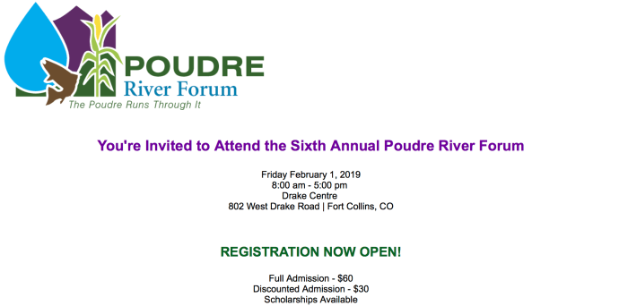 Register now to join us! Registration includes the full day’s program, as well as breakfast, lunch, and a closing beer/soft drinks celebration with opportunities get to know other Poudre River enthusiasts.