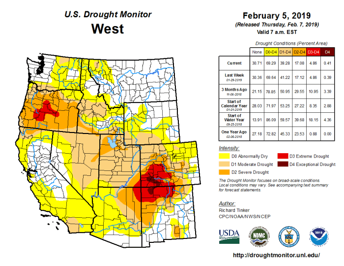 Abnormally dry conditions expanded in northeast Colorado to cover Logan, Phillips, Sedgwick, Washington and most of Yuma counties, along with the remainder of northeast Lincoln and portions of northwest Kit Carson counties. The abnormally dry area also expanded into southwest Cheyenne County. The area has received ten to 30 percent of normal precipitation since the end of 2018.