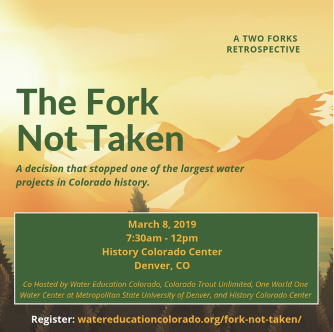 Following a continental breakfast, the agenda will feature two panel discussions, focusing first on the events leading up to the veto of Two Forks, and then following up with an exploration of what has transpired in the years since that have laid the groundwork for Denver and the surrounding suburbs’ evolving approach to providing water to growing communities in an era of increasing water scarcity.