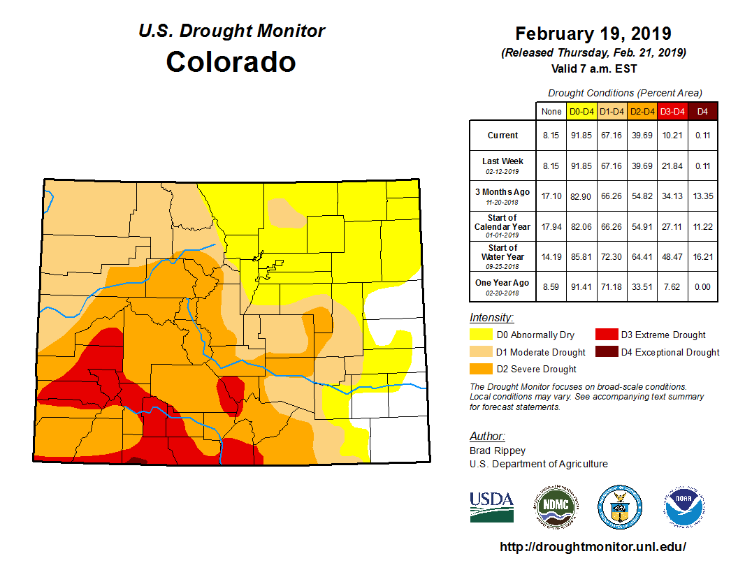 What a difference a year makes. In 2018, hot and dry conditions fueled the 416 Wildfire that destroyed homes and slowed down tourism. Farmers and ranchers sold cattle and lost crops to the drought. This week the U.S. Drought Monitor map upgraded conditions for Montezuma, La Plata and other southwestern counties.