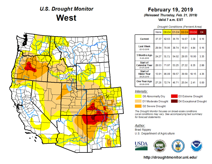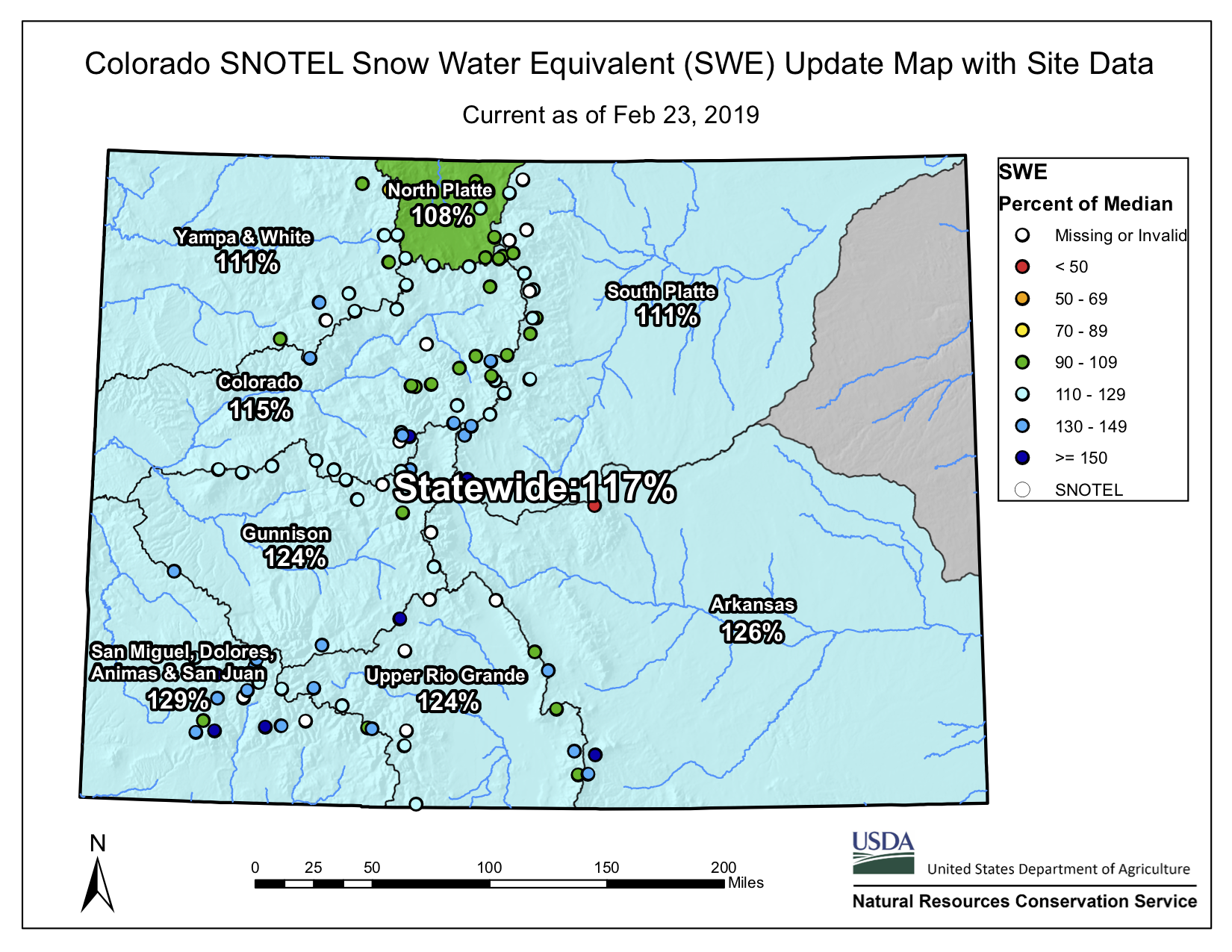 Statewide basin-filled map February 23, 2019 via the NRCS.
