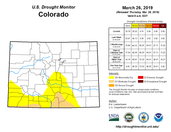Three months after a quarter of the state had been in the worst drought conditions, only a small part of Colorado remains in even moderate drought according to the most recent report from the National Drought Mitigation Center.