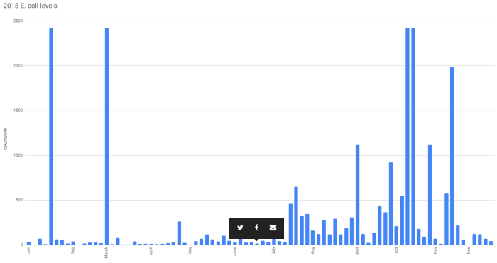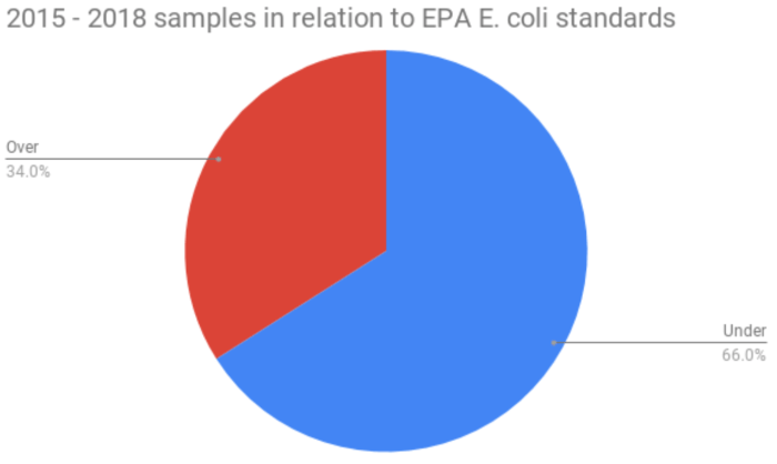 2018 E. coli levels exceeded the EPA standard 26 times.