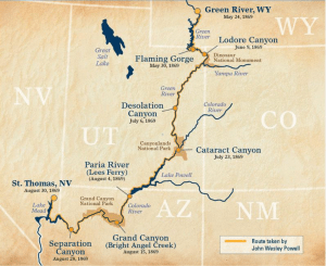 Route of Powell’s expedition with key locations noted via OARS Outfitters. Used with permission