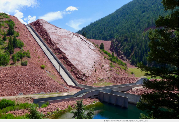 The top of the ungated spillway at Ruedi Dam. Photo credit: Brent Gardner-Smith/Aspen Journalism