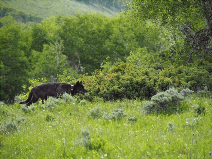 The gray wolf recently sighted in Jackson County has been confirmed as a dispersing male from Wyoming. Photo credit: Colorado Parks & Wildlife