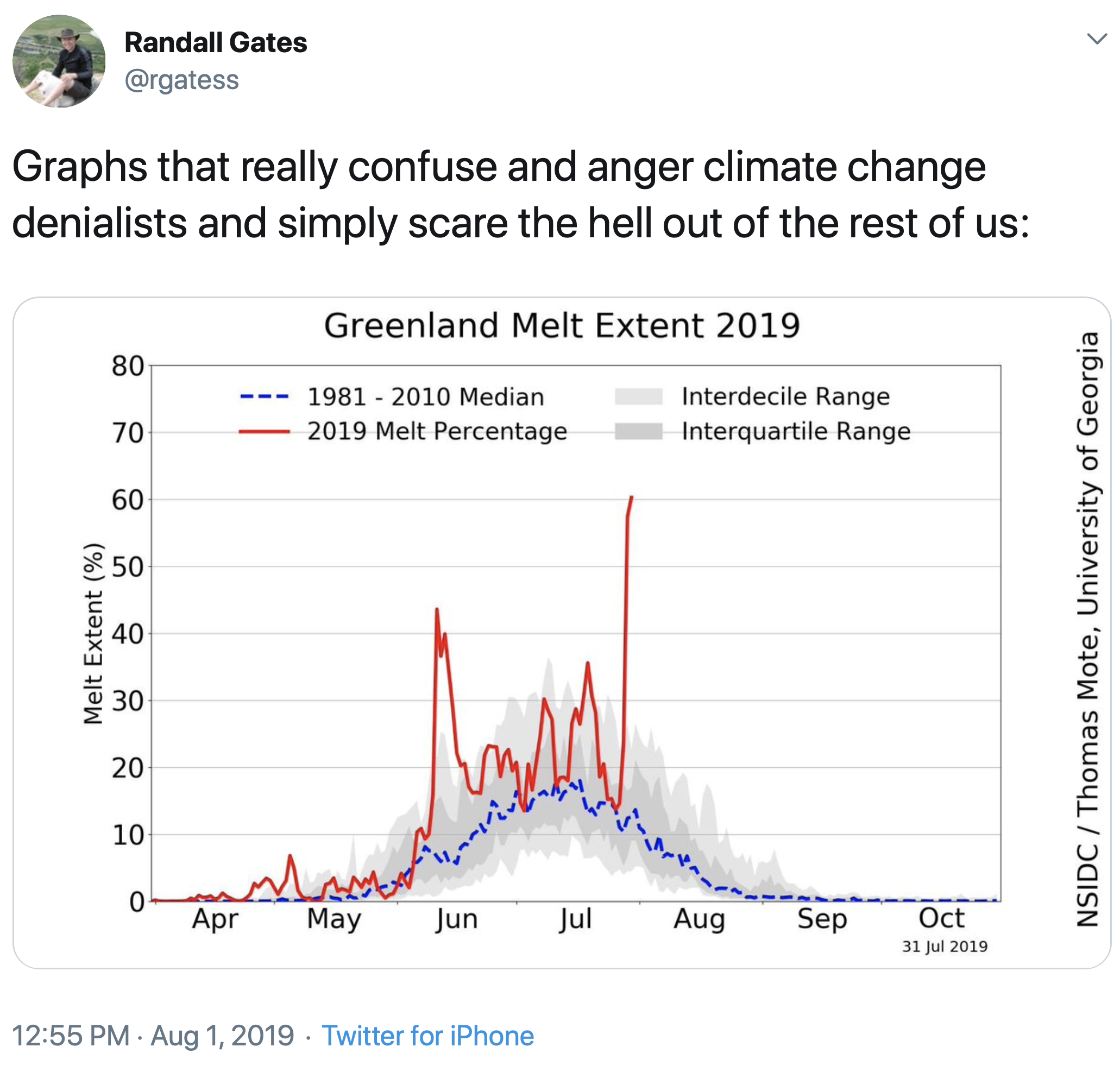 More ice melted from the ice sheet on 1 August 2019 than any other day on record.