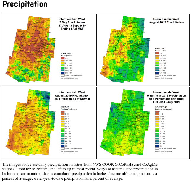 In the Southwest, the gradual winding down of the southwest monsoon usually occurs in late September. So far, the 2019 southwest monsoon has been mostly disappointing, with parts of Arizona and the Four Corners region experiencing their driest summer on record mostly due to the notable lack of monsoon rainfall. Hot and dry weather occurred this week, although some rains (0.5-2 inches) fell on southeastern Arizona and most of New Mexico. Across most of the region, SPIs are less than -1 at the 30-, 60-, and 90-day time scales. While the longer-term SPIs show better numbers, the short-term stresses are outweighing the long-term values. Evaporative demand has been greater than normal, and even though water supplies are still in good shape, reservoir levels are dropping quicker than usual for this time of year, and stream flows have declined. Therefore, with August SPEIs less than -1.5, 3-month (JJA) precipitation in the lower tenth percentile, little or no rain this week, and 1-week EDDI at D2 or worse, a large area of D0 was added to reflect this short-term dryness. In southwest Colorado and southeast Utah, D1 was added to depict areas that have reported record low JJA rainfall. In Arizona, D0 was expanded across southeastern sections while D1 slightly increased in central areas in response to low SPIs and increased 90-day deficits. For example, Flagstaff, AZ has only received 1.15” of rain since June 15 (driest on record) when 6.10” should have fallen by now, and several nearby stations (Prescott, Heber, Payson, Winslow) have also measured near-record low monsoon totals…