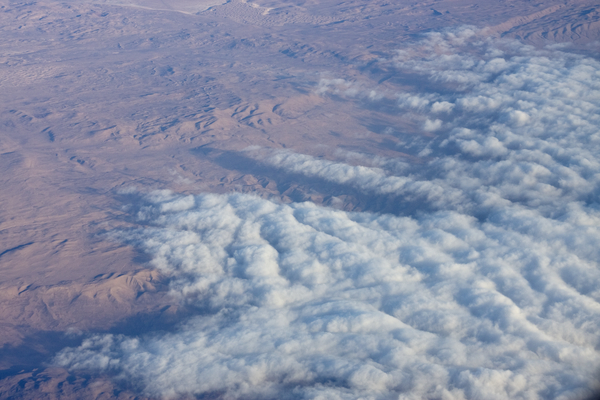 Marine stratocumulus clouds from the Pacific Ocean stream atop Chile’s Atacama Desert. Marine stratocumulus cover vast swaths of the tropical and subtropical oceans, where they reflect large amounts of sunlight and provide an overall cooling effect on climate. New global climate models are showing the potential for more global warming than long thought, perhaps due to a reduction in low-level clouds such as marine stratocumulus. Image credit: NCAR/UCAR Image and Multimedia Gallery.