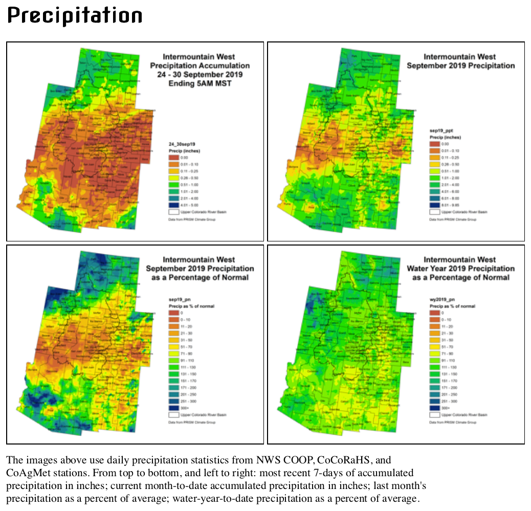 Water Year 2019 ended in an unfortunate whimper. What started out with a bang (cooler than average temperatures, above average snow, wet spring into early summer) shifted to hot and dry conditions for much of the Intermountain West, ending with an underperforming monsoon season.
