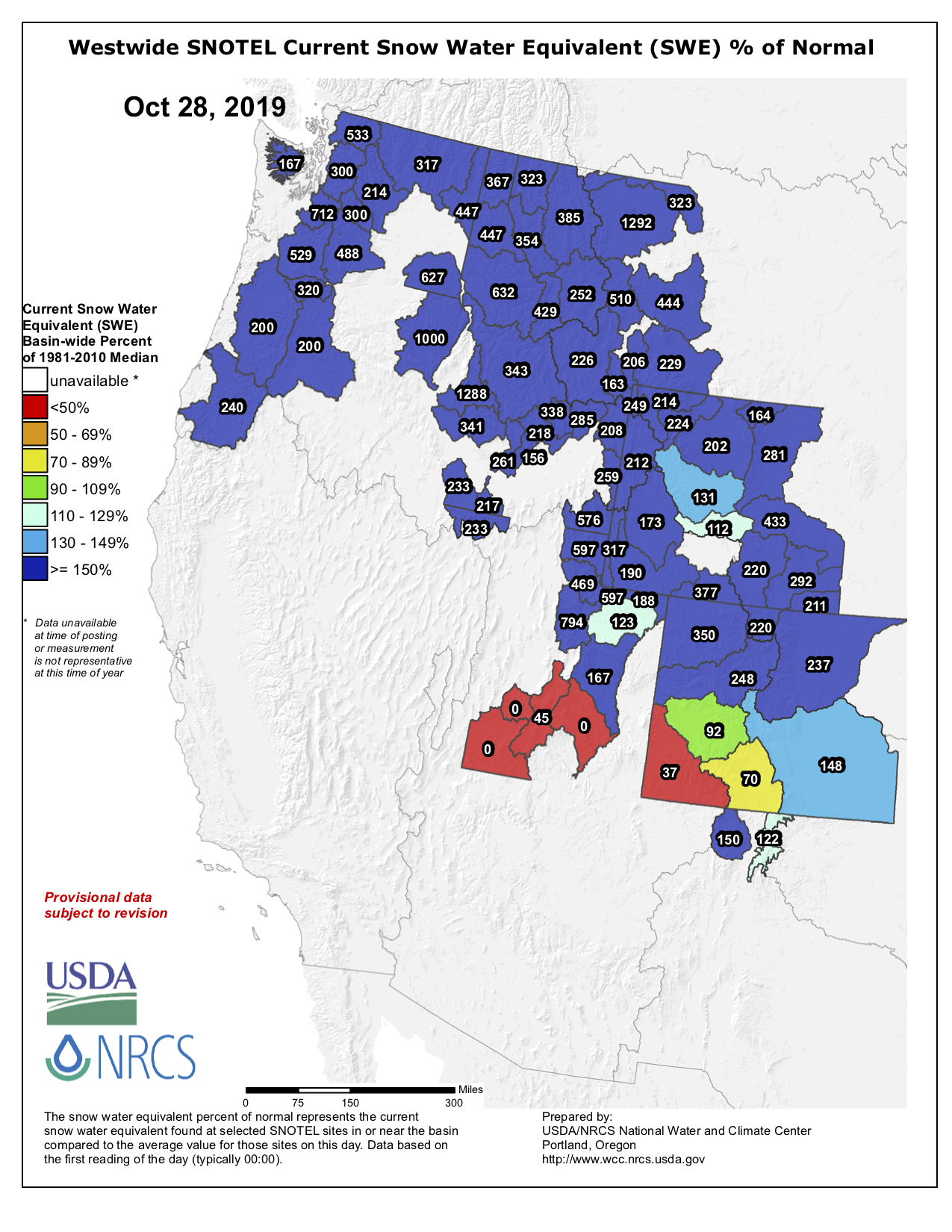 And here’s the Westwide SNOTEL basin-filled map for October 28, 2019.