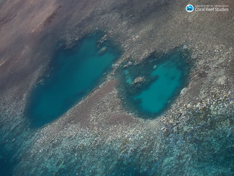 An aerial view of widespread coral bleaching in the northern Great Barrier Reef, 2016. Photo: Terry Hughes, ARC Centre of Excellence for Coral Reef Studies (CC BY-ND 2.0)