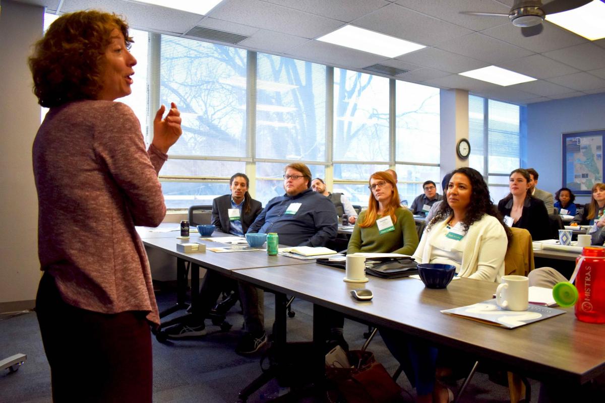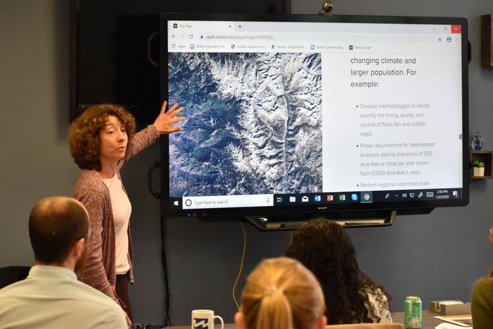 Nancy Vogel, director of the Governor’s Water Portfolio Program, highlights key points in the draft Water Resilience Portfolio last month for the Water Education Foundation’s 2020 Water Leaders class. Source: Water Education Foundation