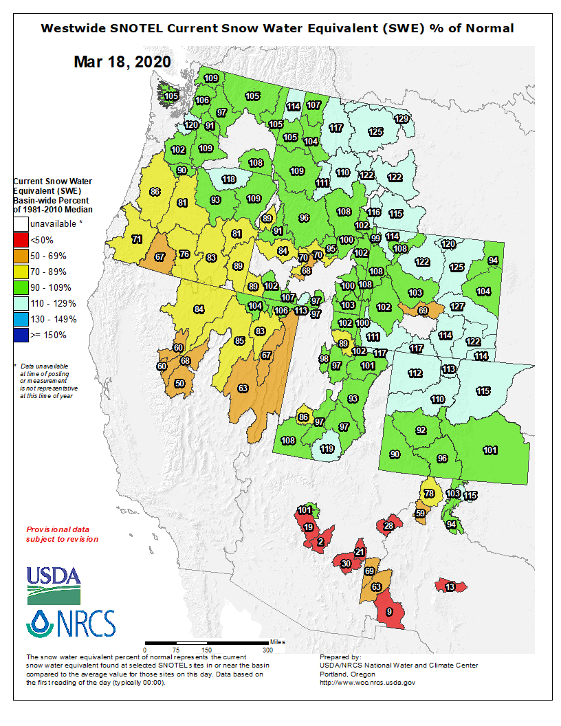 Statewide Basin High/Low graph March 17, 2020 via the NRCS.