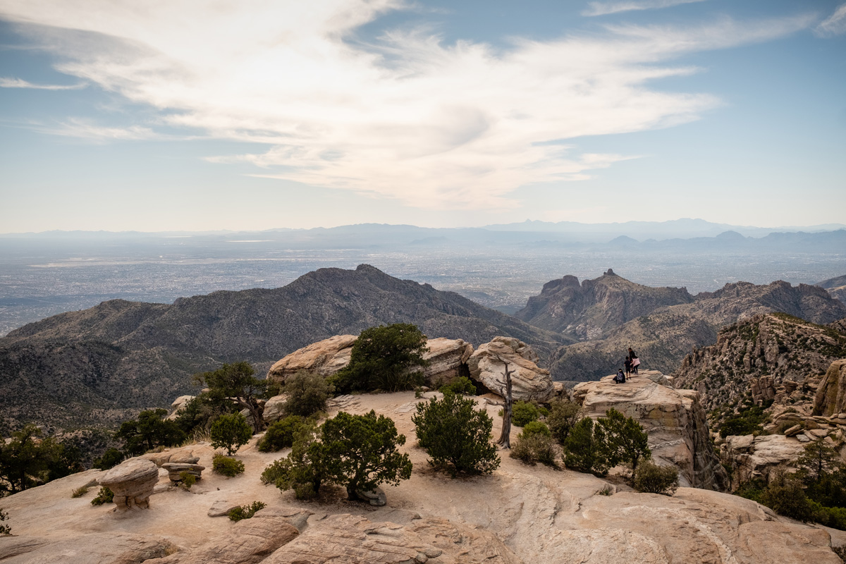 Hikers look out on Tucson, Arizona, from Mount Lemmon in the Coronado National Forest. This weekend, its trails were busier than usual, but still allowed for social distancing. Roberto “Bear” Guerra/High Country News