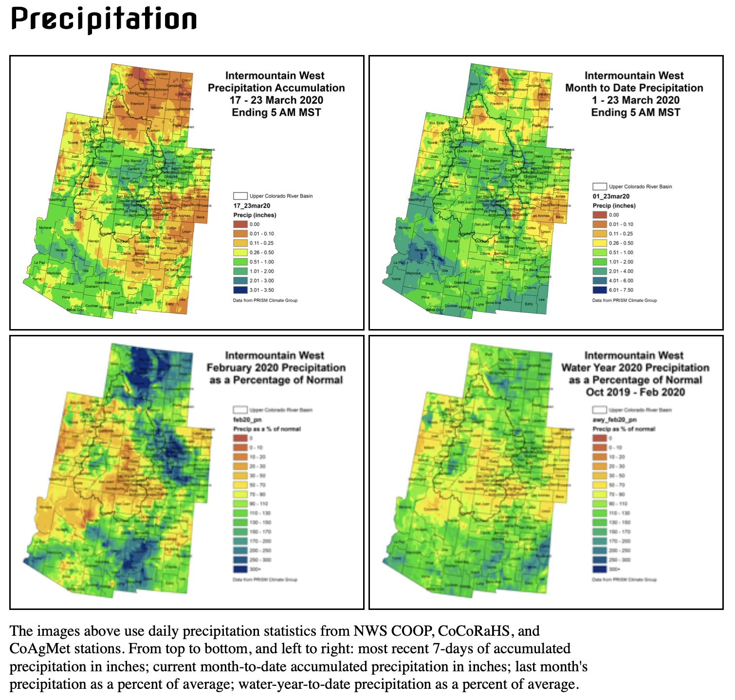 Click here to read the current assessment. Click here to go to the NIDIS website hosted by the Colorado Climate Center. Here’s the summary: