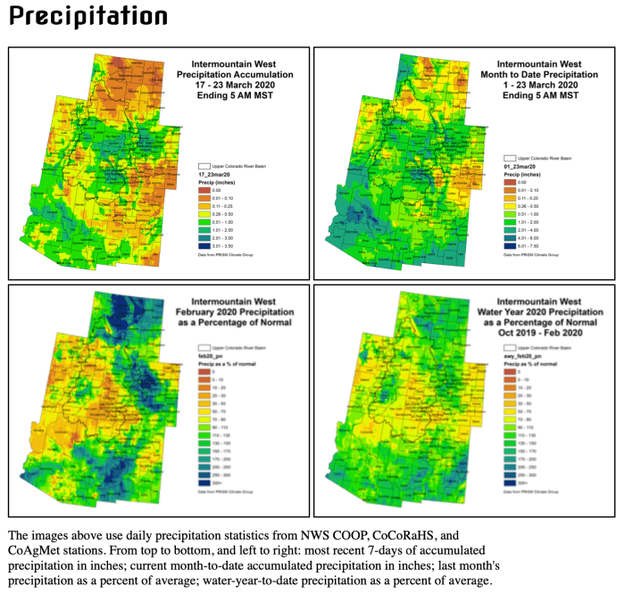 Much of the Intermountain West experienced an active storm pattern last week, with widespread areas receiving between half an inch and inch of moisture. Month-to-date, the majority of the region has received at least an inch of moisture, with some higher elevations seeing over 2 inches. Some areas of Wyoming, southeast CO, and spots in western Utah have been a bit drier for the month. For most of the Intermountain West, temperatures have been above average since the beginning of March.