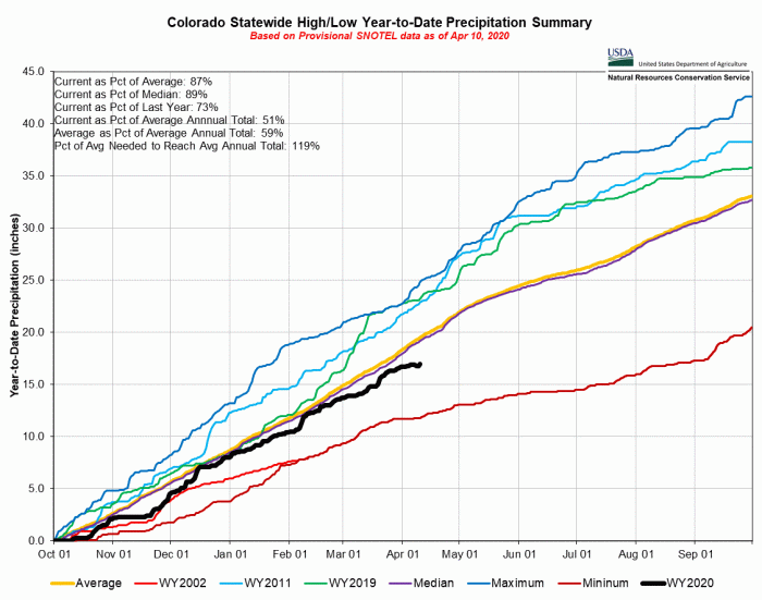 Water year 2020 precipitation through April 10, 2020 via the NRCS.
