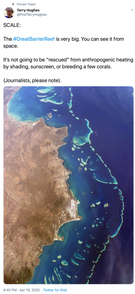 It’s not for lack of trying. The most recent key reports from the International Panel on Climate Change included stark warnings about the reef death spiral and urged immediate, significant cuts of greenhouse gas pollution to avert their annihilation.