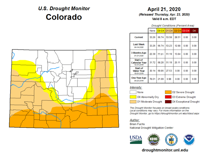 Colorado Drought Monitor April 21. 2020.