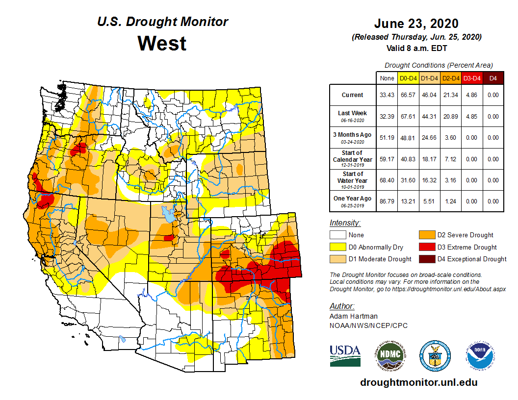 Colorado Drought Monitor June 23, 2020.