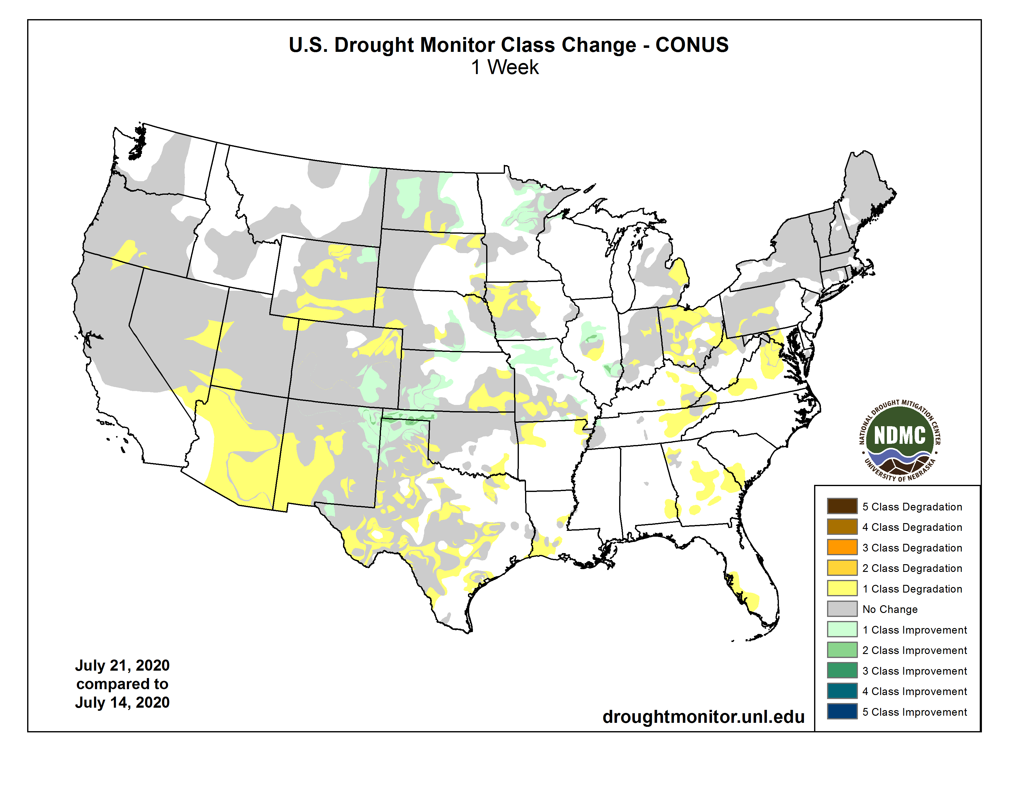In southeast Colorado, recent rains led to extreme drought shifting to severe conditions for all of Pueblo and Crowley counties. Extreme conditions also withdrew from a small portion of eastern Huerfano County, along with north central Las Animas County, most of Otero County, and portions of Lincoln, Elbert, Kiowa and Bent counties…