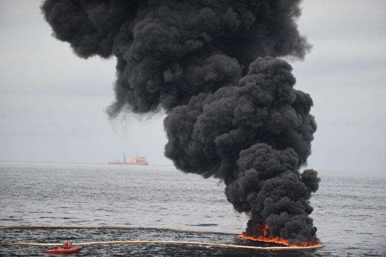 Oil burns during a controlled oil fire in the Gulf of Mexico off the coast of Venice, Louisiana, following the April 20, 2010, explosion on Deepwater Horizon. The Great American Outdoors Act and the Land and Water Conservation Fund depend on the oil and gas industry. This leaves both funds vulnerable should the U.S. transition away from fossil fuels or if production drops for other reasons, like the current pandemic. (U.S. Navy photo by Mass Communication Specialist 2nd Justin E. Stumberg/Released)