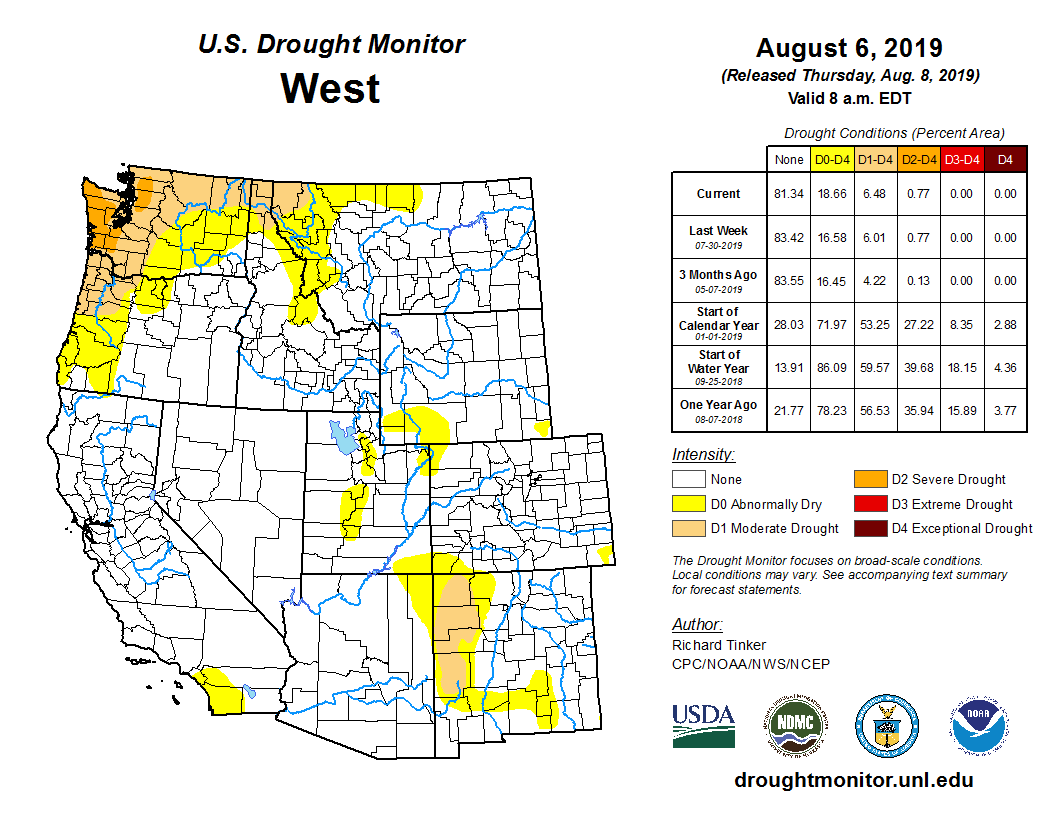 West Drought Monitor August 8, 2019.