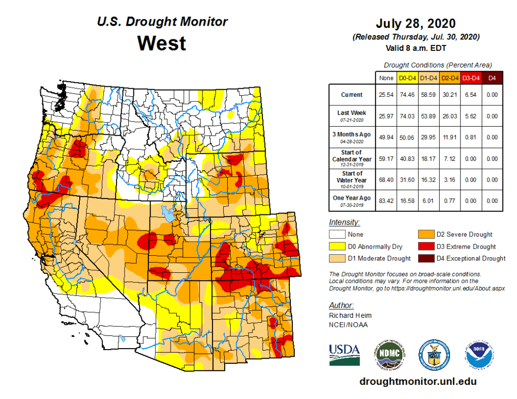 West Drought Monitor July 28, 2020.