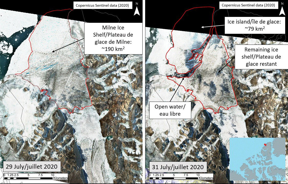 “Entire cities are that size. These are big pieces of ice,” Luke Copland, a glaciologist at the University of Ottawa who was part of the research team studying the Milne Ice Shelf, located on Ellesmere Island in the Canadian territory of Nunavut, told Reuters. “This was the largest remaining intact ice shelf, and it’s disintegrated, basically.”