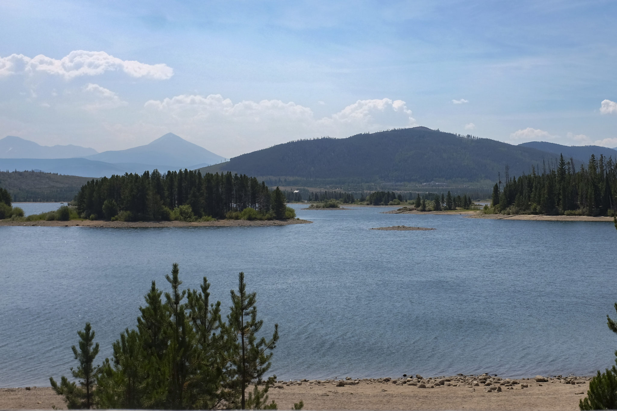 Low water levels Aug. 18 at Dillon Reservoir expose sand rings around the lake’s islands. The reservoir, which is the largest in the system supplying Denver Waterās customers, is about 94% full. Photo credit: Lindsay Fendt/Aspen Journalism