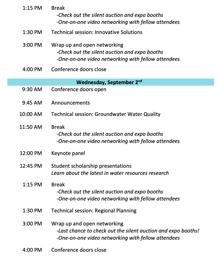 I am emailing because AWRA Colorado and CGWA are hosting what I would like to think is a really awesome event, and its about to go LIVE! Tonight is a virtual happy hour with technical presentations starting tomorrow morning. Since its virtual, we can let registrants at any point! If you would be willing to share this “last call” with your networks it would be greatly appreciated!!