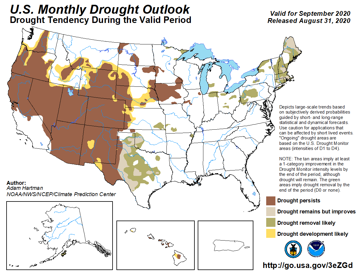 September 2020 US Drought Monitor outlook via the Climate Predication Center.