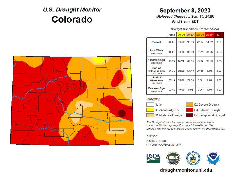 Colorado Drought Monitor September 8, 2020.