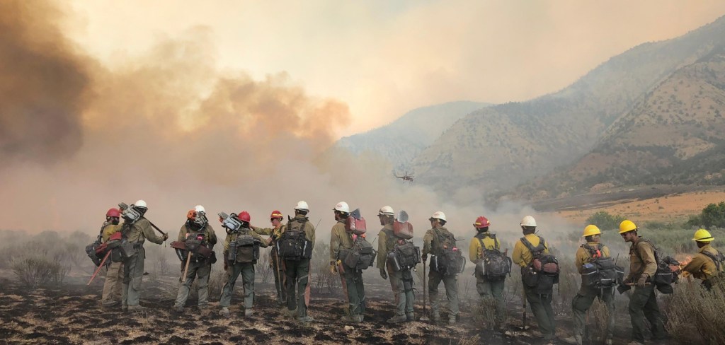 Firefighters on the march: The Pine Gulch Fire, smoke of which shown here, was started by alighting strike on July 31, 2020, approximately 18 miles north of Grand Junction, Colorado. According to InciWeb, as of August 27 2020, the Pine Gulch Fire became the largest wildfire in Colorado State history, surpassing Hayman Fire that burned near Colorado Springs in the summer of 2002. Photo credit: Bureau of Land Mangement-Colorado, via InciWeb and National Interagency Fire Center.