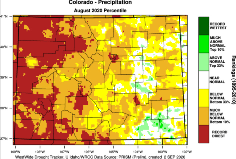 Among the most devastating effects of hot, arid conditions for Colorado has been the propensity for large wildfires. The Pine Gulch Fire, sparked by lightning July 31 near Grand Junction, is the state’s largest wildfire in Colorado history. As of Friday, it was more than 139,000 acres in size and 95% contained, following about six weeks of firefighting efforts.