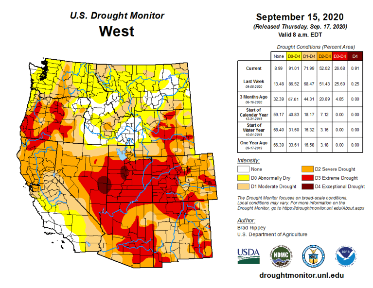 Treste Huse, a senior hydrologist for the National Weather Service in Boulder, explained that drought in Summit County started slowly this spring, then progressed to an extreme drought quickly. She explained that Summit County saw a dry fall and while winter saw a decent snowpack, the dry spring meant that the soil moisture was fairly dry going into the summer, which increased the wildfire danger. The U.S. Drought Monitor summary noted that topsoil moisture Sept. 13 was rated very short to short in Colorado.