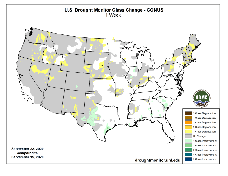 US Drought Monitor one week change map September 22, 2020.
