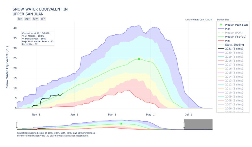 According to the U.S. Department of Agriculture National Water and Climate Center’s snow pack report, the Wolf Creek summit, at 11,000 feet of elevation, had 11 inches of snow water equivalent as of 8:30 a.m. on Dec. 9.
