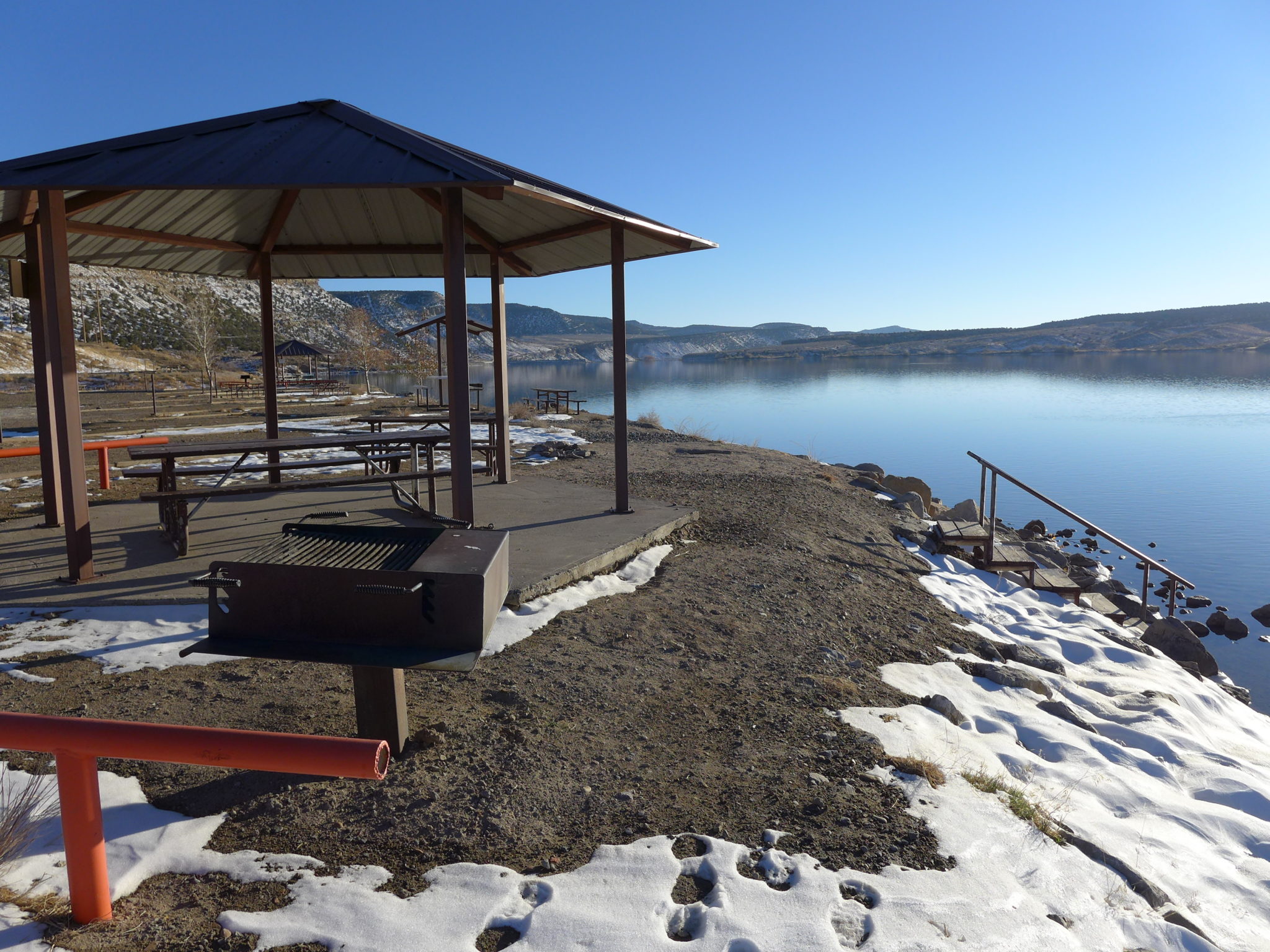 Kenney Reservoir, located just east of Rangely in late October, has a picnic area. Kenney Reservoir is silting in, and the Rio Blanco Water Conservancy District is proposing building a new off-channel reservoir upstream on the White River, but the state’s top engineers are opposed to the project. Photo credit: Heather Sackett/Aspen Journalism